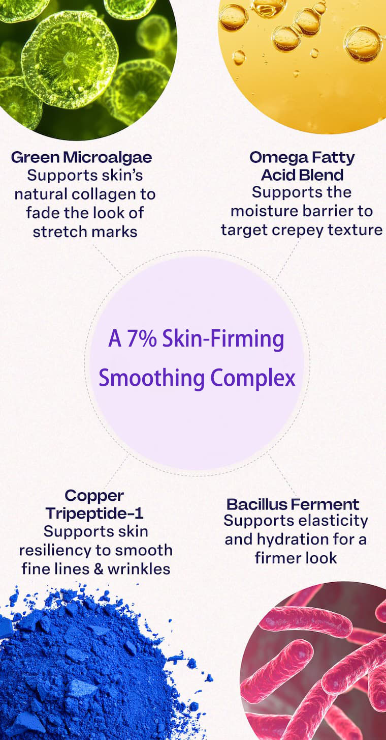 • Smooths and reduces the look of stretch marks